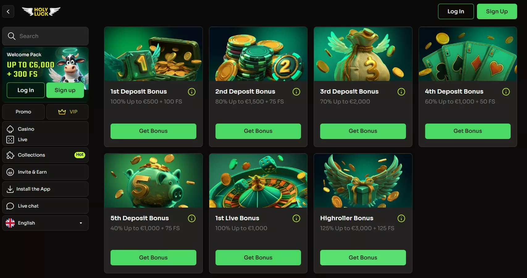 Holyluck casino online biedt een uitgebreid welkomstpakket verdeeld over vijf stortingen, plus extra promoties voor actieve klanten. Elk bonustype heeft eigen voorwaarden voor storting en inzet. De nieuwe bonussen bij Holyluck casino 2025 omvatten ook speciale weekend- en slot-promoties.