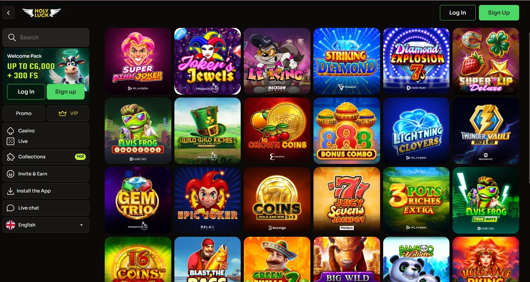 Het platform biedt meer dan 470 spellen van diverse software providers. Speel bij Holyluck online casino voor echt geld in categorieën zoals Bonus Friendly Slots, Editor’s Choice, Bonus Buy, Hot RTP, Instant, Jackpots, Drops & Wins en New. De collectie omvat klassieke gokautomaten, tafelspellen en live dealer opties.