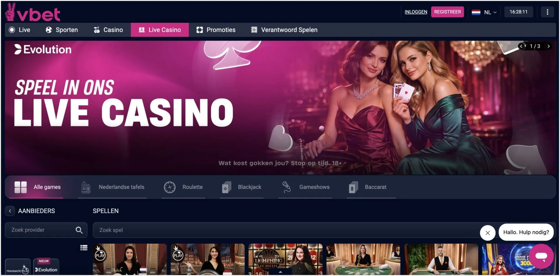 VBet Live Casino heeft negentien live casinoproviders beschikbaar — het grootste aanbod dat op één platform beschikbaar is. Niet alle negentien zijn in elk land actief; het beschikbare aanbod is afhankelijk van de locatie van de speler. De kern bestaat uit Evolution, Pragmatic Play en Creedroomz, aangevuld met Ezugi, Vivo, Playtech, LuckyStreak, SuperSpade en meer. Nederlandse spelers hebben toegang tot een subset van deze providers op basis van hun locatie.
