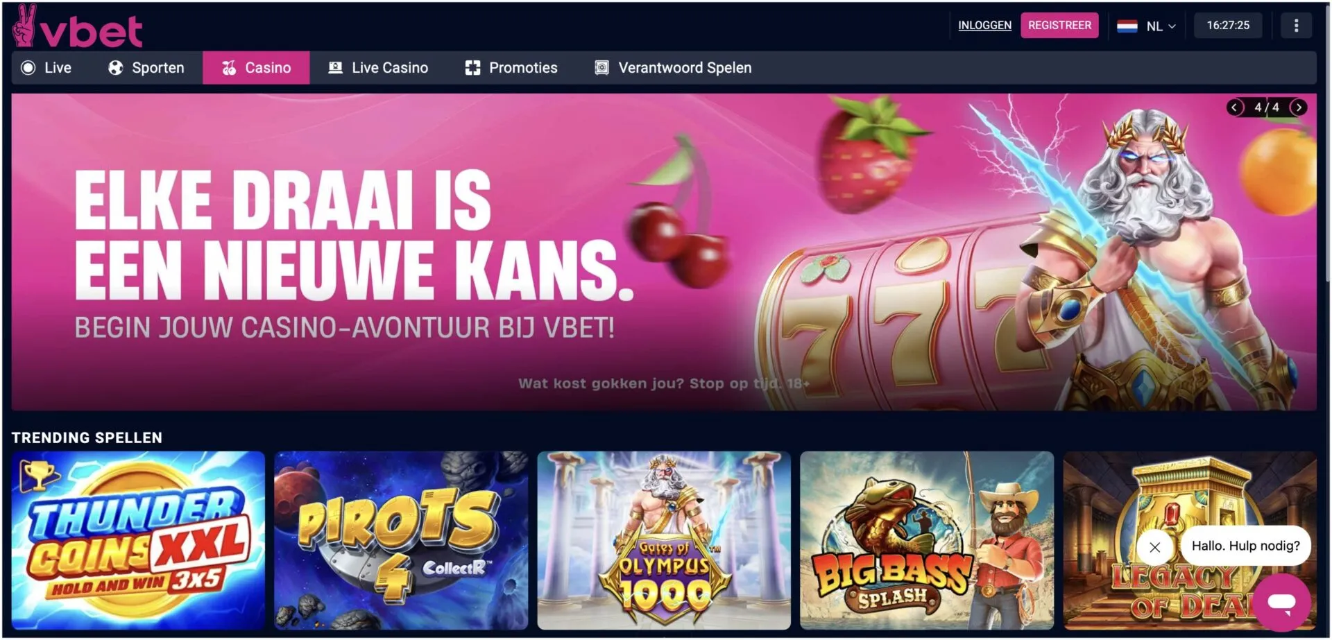VBet nl scoort sterk op de breedte van het live casinoprovidersaanbod en de omvang van het sportsbook. Het betaalaanbod is internationaal breed, maar de beschikbaarheid per methode varieert per land — Nederlandse spelers checken best de actuele betaalopties bij aanmelding. De VBet-welkomstbonus varieert per markt, wat betekent dat de exacte waarde pas bij registratie zichtbaar is.